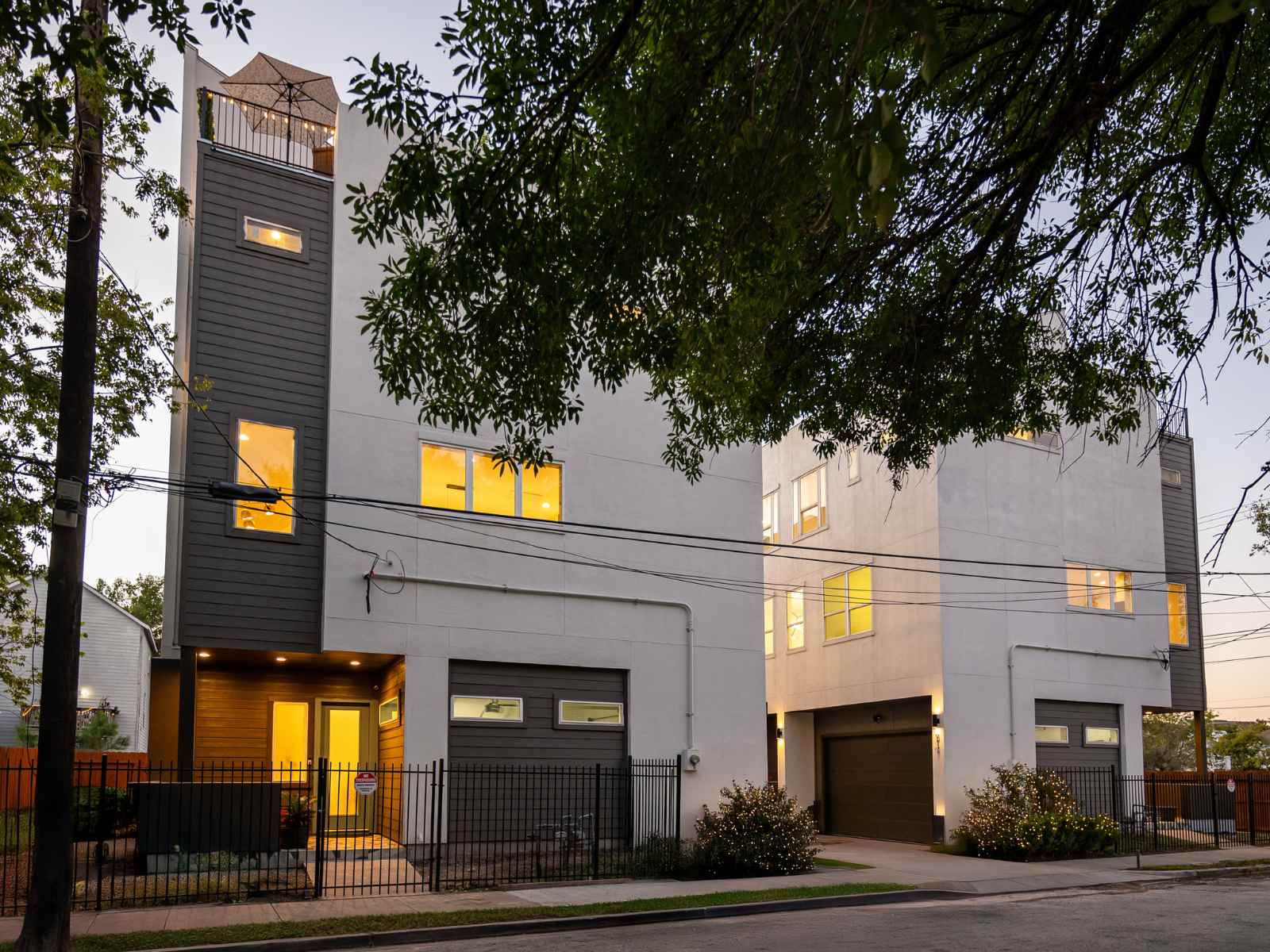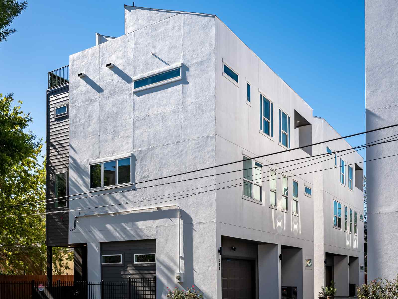 Four modern income-producing townhomes near Downtown, Rice Military, and The Heights.