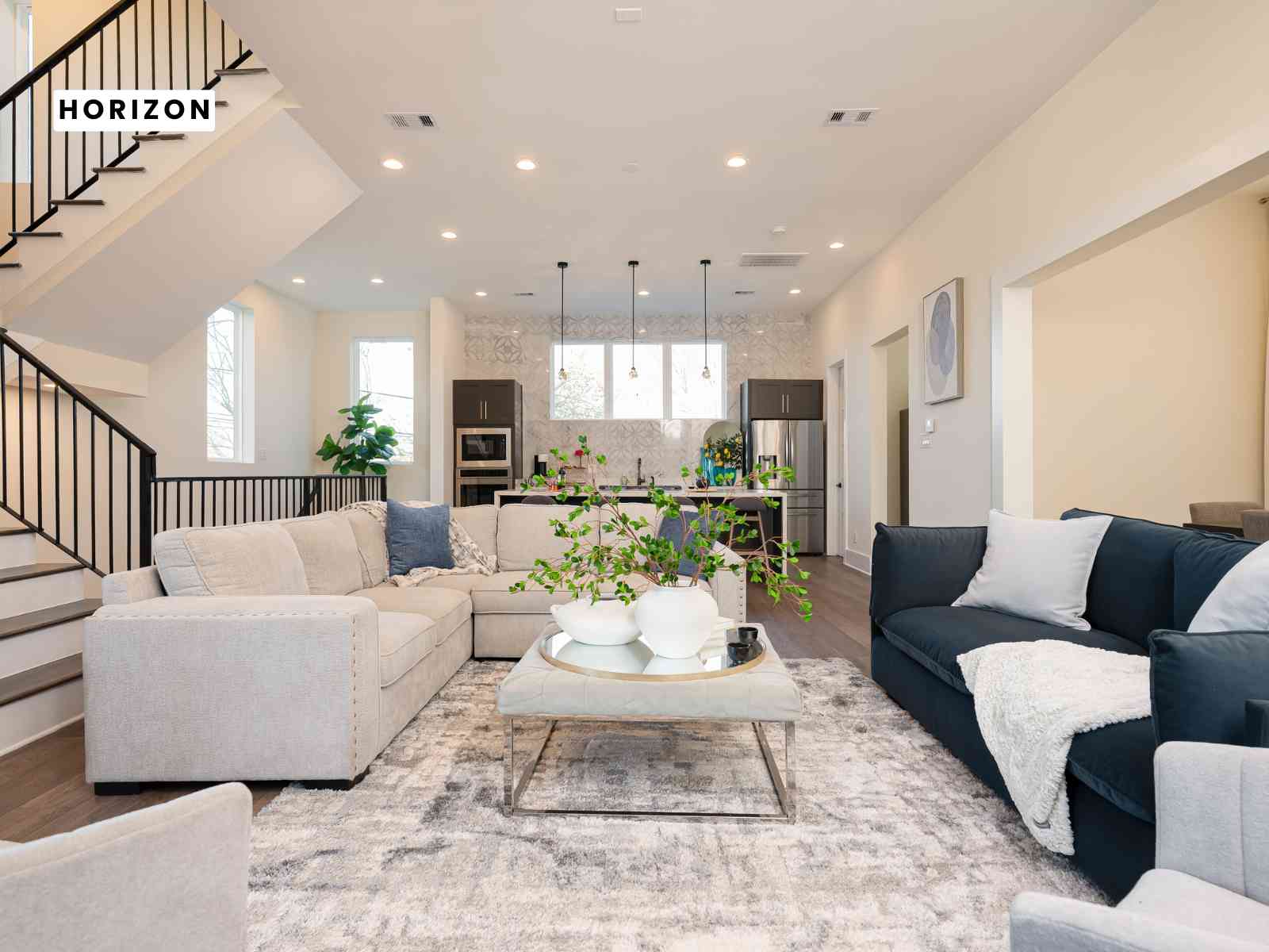 Set in Houston’s Rice Military, this 4-story home balances style and function for families, work trips, and longer stays. The entertainment floor brings everyone together with an airy living room, a chef-ready kitchen, and seating for groups. Upstairs, bedrooms are quiet with blackout shades. The master suite adds a terrace retreat, while the rooftop lounge under string lights delivers relaxed evenings with skyline glimpses.